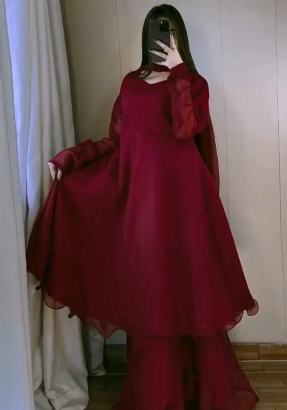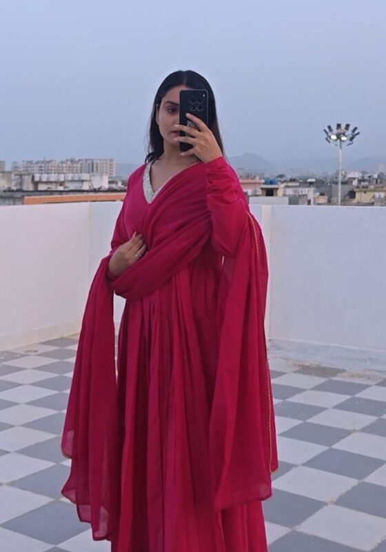 “Introducing the epitome of timeless grace and contemporary style – our Red Georgette Dress with Plazo and Dupatta. This enchanting ensemble is designed to make you feel like royalty on any occasion.