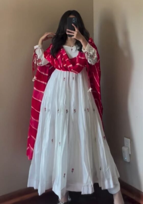 🌸✨ Festive Grace, Wedding Charm ✨🌸 Step into celebrations with this stunning cotton embroidered Anarkali dupatta set – a perfect