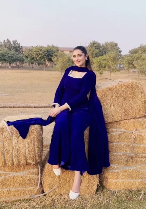 Royal Velvet Elegance Kurta with Blue Velvet Print Dupatta