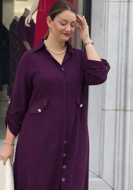 Designed for the modern woman, this set features a smart collar neckline and elegant golden button detailing that adds a