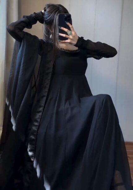 🖤✨ Elegance in Motion ✨🖤 Grace that flows with every step — this Black Georgette Anarkali is pure royal charm!