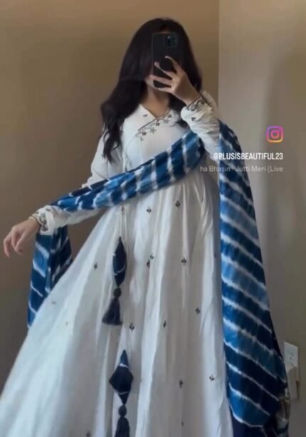 🌸✨ Festive Grace, Wedding Charm ✨🌸 Step into celebrations with this stunning cotton embroidered Anarkali dupatta set – a perfect