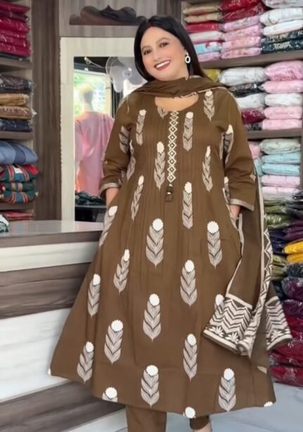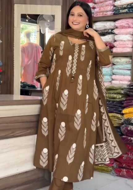 Elevate your everyday ethnic style with this elegant brown georgette kurta pant dupatta set, designed for a graceful and contemporary