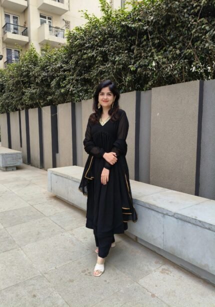 Step into effortless elegance with our Black Daisy Print Sleeveless Kurti 🌸. Designed in a straight-cut silhouette, this kurti blends