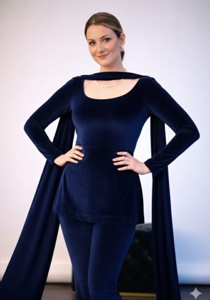 Channel the charm of modern celebrity style with this Hania Aamir–inspired velvet outfit, crafted for women who love graceful silhouettes