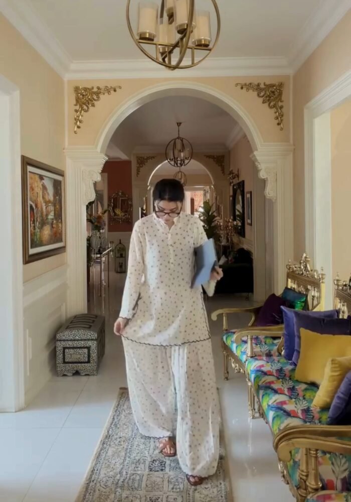 What makes it special is the delicate embroidery detailing on the borders of kurti, sleeves & palazzo, adding a touch of elegance without compromising on comfort ✨