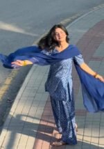 This beautiful blue printed kurta set with a soft chiffon dupatta is all about comfort meets charm 🌿