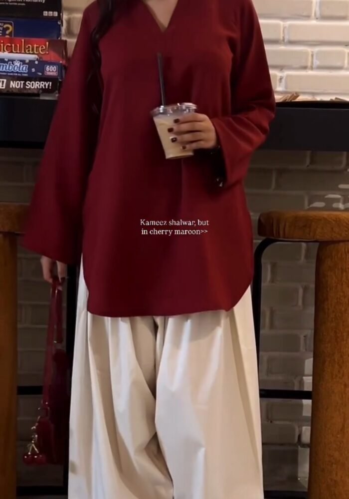 Step into timeless style with this cherry maroon Farsi set, designed for women who love comfort with a refined, minimal touch 💫