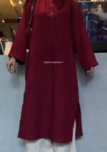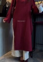 Crafted in rich Sally fabric, this long straight kurta is designed to give you that smooth fall, soft feel, and effortless grace all day long. The subtle vertical texture adds depth, while the relaxed silhouette keeps it classy & comfortable.