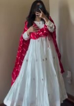 Step into celebrations with this stunning cotton embroidered Anarkali dupatta set – a perfect blend of tradition & elegance 💫