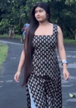 Crafted with a classic black base and adorned with delicate floral motifs, this kurti brings effortless grace to your look. The square neckline adds a trendy twist, while the sleeveless cut makes it ideal for summer and casual wear.