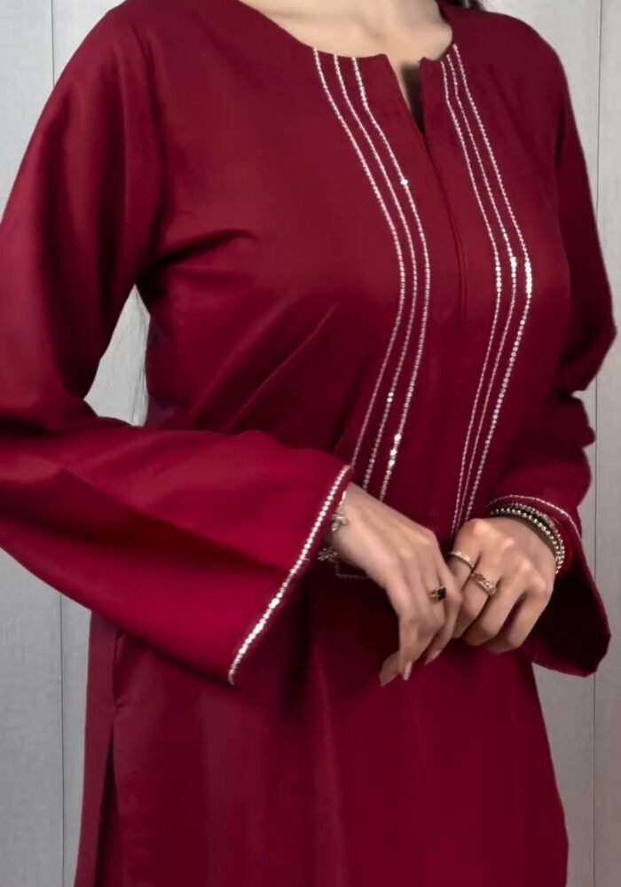 ▫️ Straight kurta with fine sequin neckline detailing