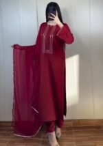 Elevate your ethnic style with this elegant Rayon Kurta Pant Set, paired with a soft chiffon dupatta that adds a flowy, feminine charm.