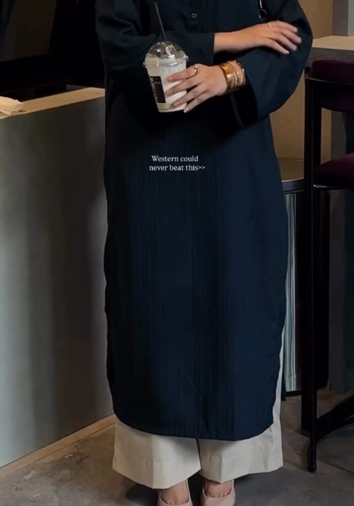 Drenched in a stunning Teal Blue, this long straight kurta in premium Sally fabric flows like elegance with every step. The soft vertical texture adds depth and richness, while the relaxed silhouette gives you that effortless, confident presence.