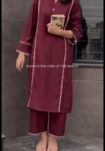 Rich, elegant, and effortlessly stylish — this premium rayon kurta set is designed for women who love timeless fashion with everyday comfort. The deep earthy tone paired with delicate detailing creates a refined look that feels both graceful and modern.